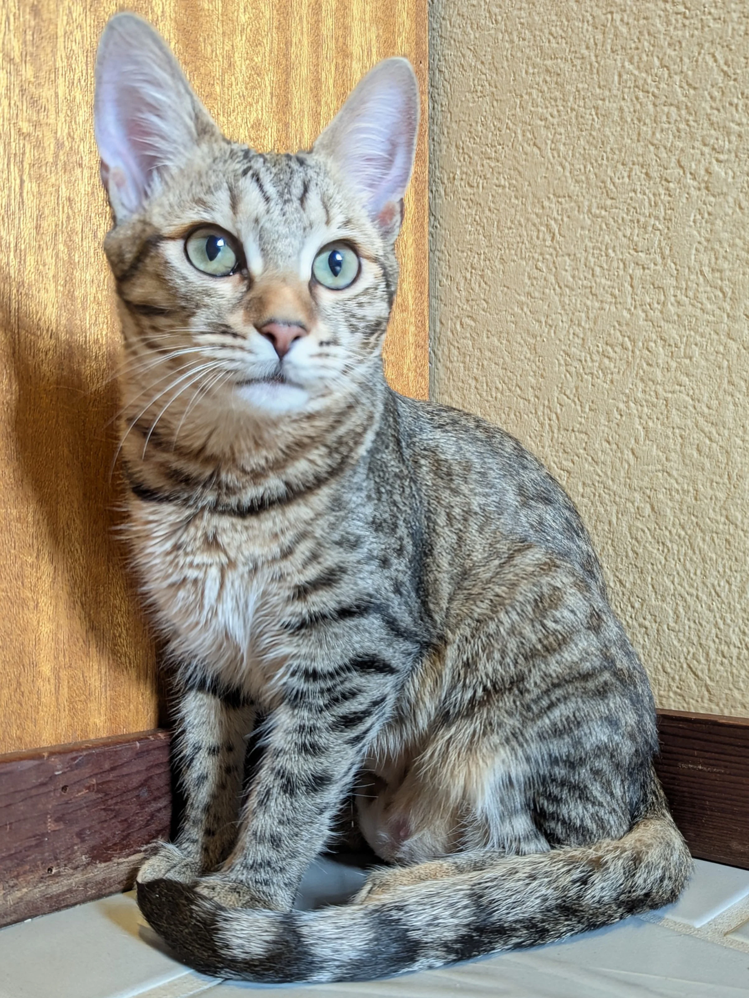 The backs of the wildcat’s ears are characteristically a rich red-brown. Long legs and high shoulder blades give them a distinctive action; they move more like a cheetah that a domestic cat.