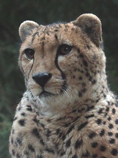 The cheetah has a slender, long-legged body built for speed. The fastest of all land animals, cheetahs can run up to 70 miles per hour in pursuit of their prey. A cheetah's maximum stride length is around twenty-two feet, with almost half of that distance traveled fully airborne! The cheetah uses vast amounts of energy chasing its prey and is susceptible to having its meal stolen by animals such as the leopard and hyena as it is not a good fighter. Once found throughout Africa and Asia, the cheetah has been sharply reduced through hunting and habitat destruction to sub-Saharan Africa with a small population in Iran. Only around 12,000 cheetahs are left in all of Africa, and another 200 left in Iran. Cheetahs have been around for at least three million years, before any of the other cats. Many people are working hard to see that they don't disappear altogether.